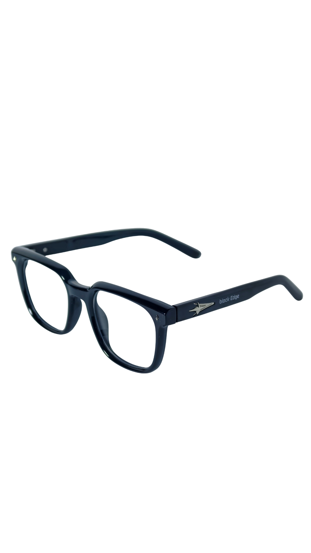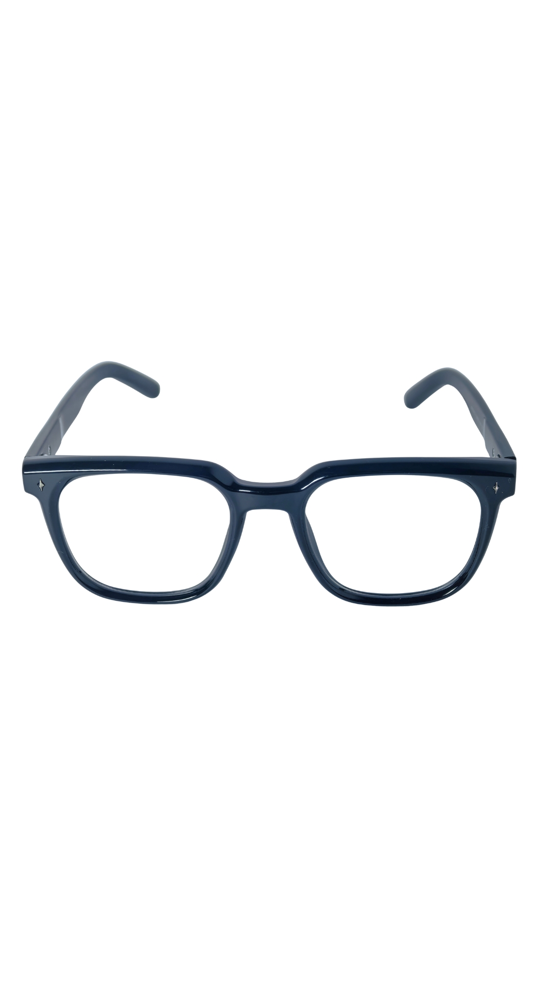 Bold, thick square acetate eyeglasses with advanced blue light blocking technology.